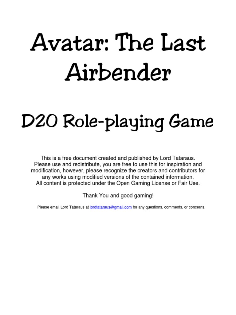 Avatar The Last Airbender D20 Rpg Printable Pdf D20 System Leisure